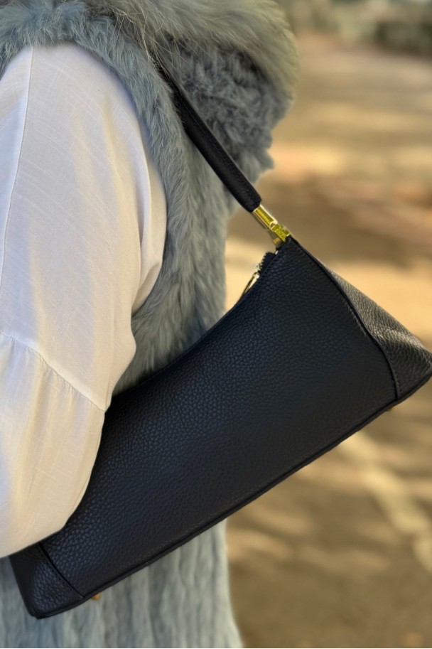 Descubre nuestro bolso azul marino de piel, una pieza pensada para acompañarte en tu día a día con la suavidad, la calidad y elegancia que caracteriza nuestra marca. Su diseño alargado y equilibrado abraza el hombro con comodidad, creando un look natural y femenino, perfecto para mujeres que valoran la sencillez con personalidad.