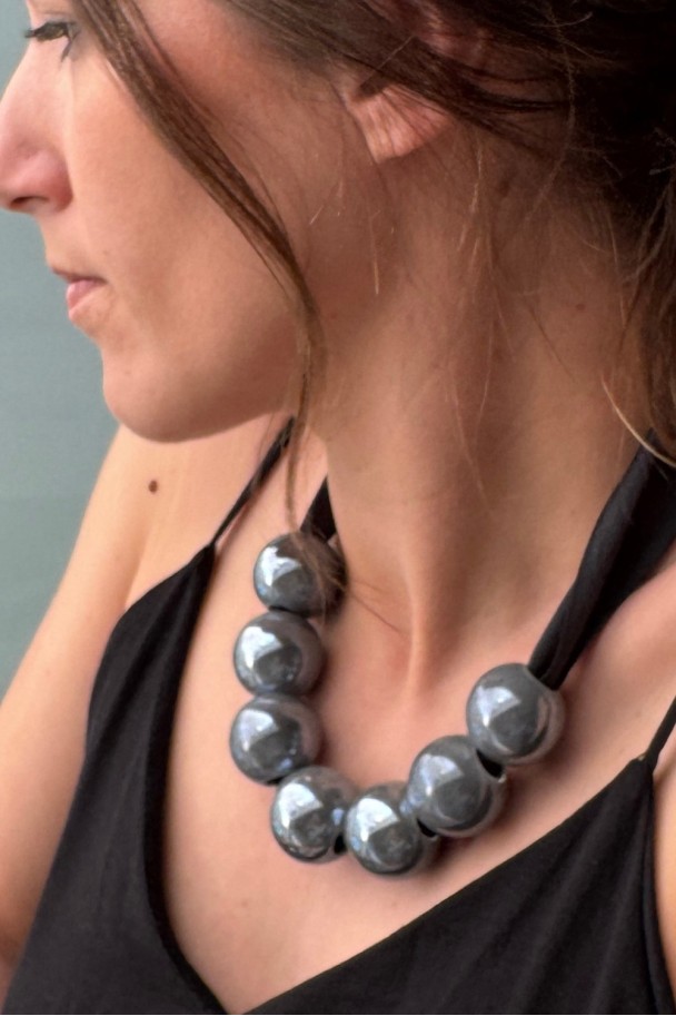 Descubre la belleza atemporal de nuestro collar de piedras de cerámica, una pieza única pensada para mujeres que buscan estilo, distinción y comodidad en un solo complemento. Sus grandes cuentas de cerámica, de acabado brillante y sofisticado, lo convierten en el accesorio ideal para elevar cualquier look, desde un outfit casual hasta un conjunto más formal.