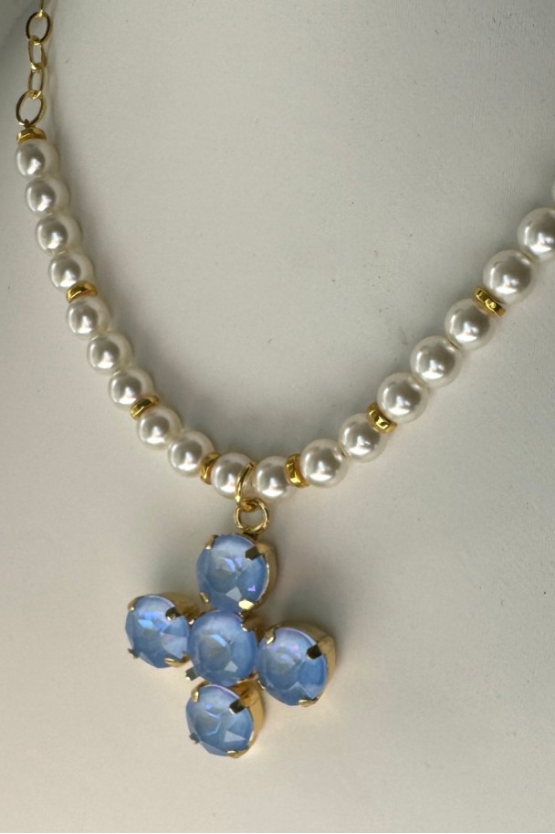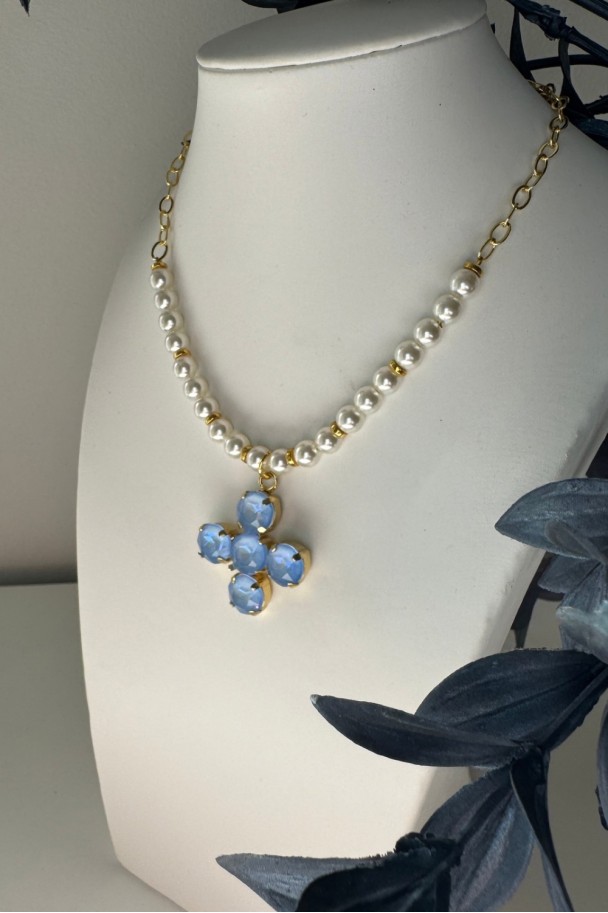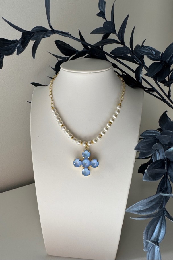 Perfecto para mujeres elegantes y seguras de sí mismas, este collar es el detalle ideal tanto para una ocasión especial como para dar un toque refinado a tu día a día. Su cruz azul en contraste con las perlas crea una armonía visual que nunca pasa desapercibida.