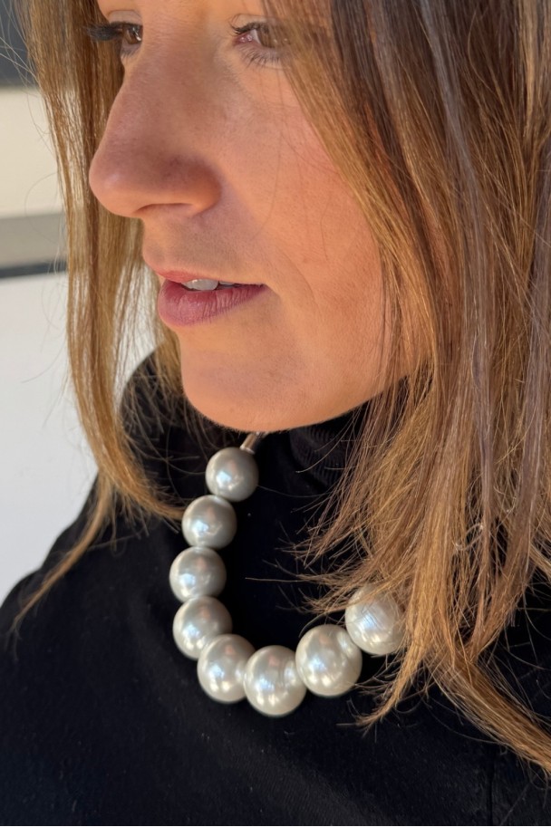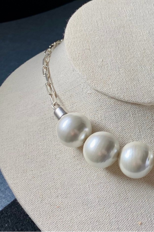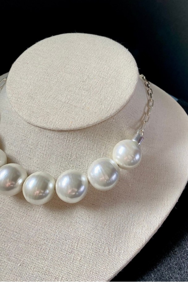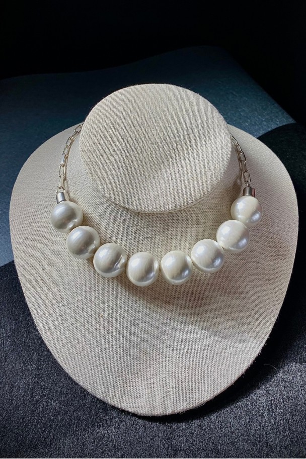 Descubre el encanto atemporal de nuestro collar de perlas blancas, una pieza que transforma cualquier look en un símbolo de sofisticación y distinción. Perfectamente seleccionadas, estas perlas reflejan la luz con un brillo natural, mientras que su diseño moderno con cadena de eslabones en baño de plata añade un toque versátil que combina con cualquier ocasión.