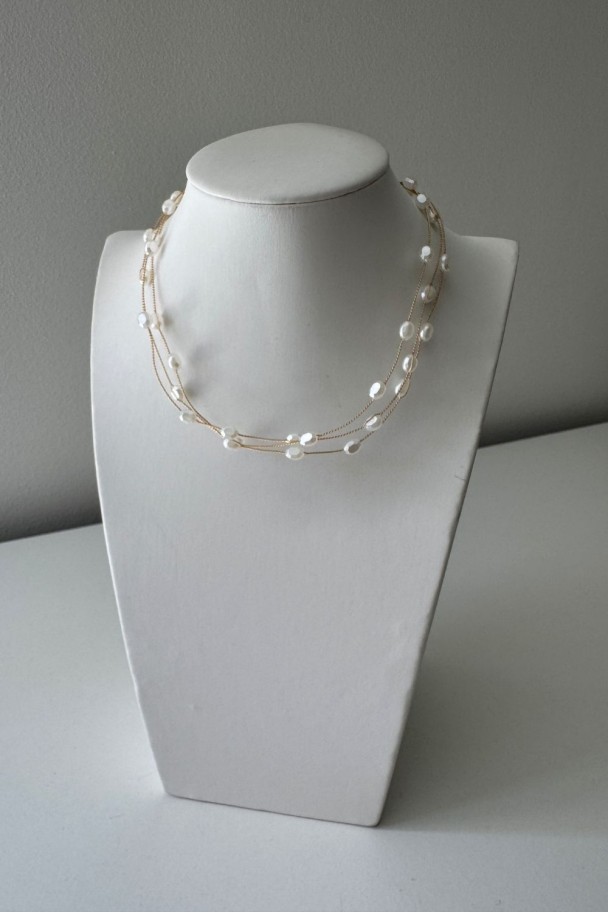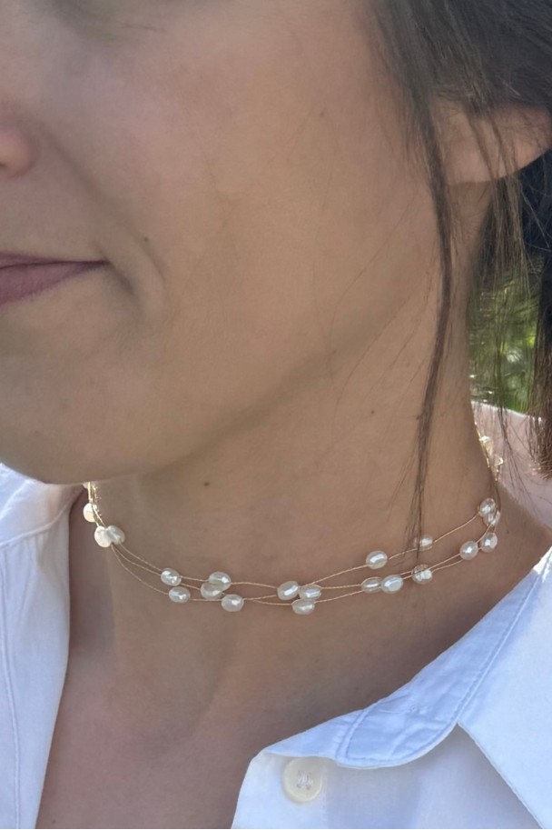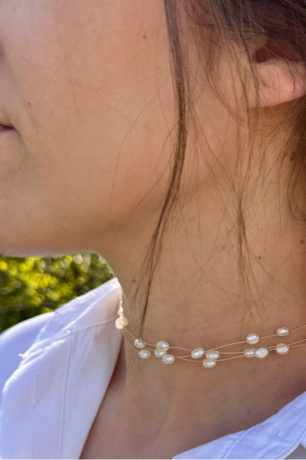 Descubre la delicadeza de nuestra gargantilla TRIGO de perlas flotantes, una joya que combina sofisticación y ligereza en un diseño que realza tu cuello con naturalidad. Elaborada con hilos casi invisibles y pequeñas perlas, esta pieza crea un efecto flotante único que enamora a primera vista.