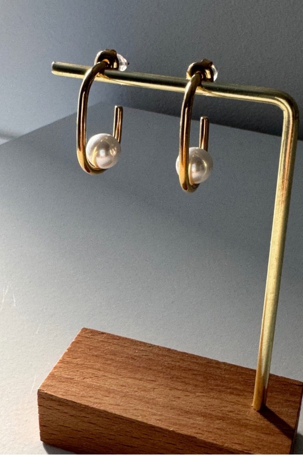 Estos pendientes combinan un aro dorado ligero con una perla blanca que aporta luz y sofisticación al rostro desde el primer momento.