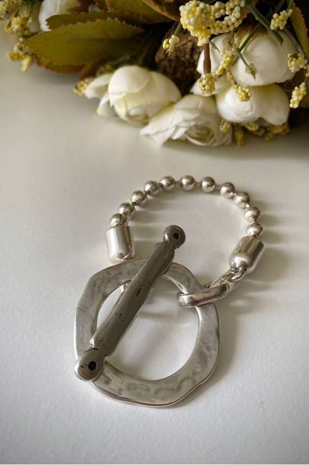 Descubre la pulsera perfecta para realzar tu look. Su acabado en baño de plata y su diseño artesanal hacen de esta pieza un imprescindible en cualquier colección de bisutería. Cada detalle está cuidadosamente trabajando para ofrecerte un accesorio sofisticado, versátil y atemporal.