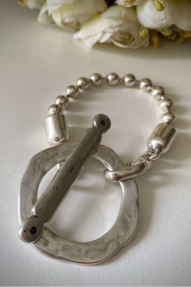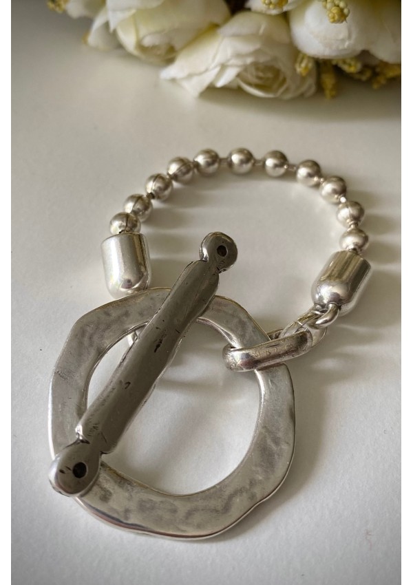 Descubre la pulsera perfecta para realzar tu look. Su acabado en baño de plata y su diseño artesanal hacen de esta pieza un imprescindible en cualquier colección de bisutería. Cada detalle está cuidadosamente trabajando para ofrecerte un accesorio sofisticado, versátil y atemporal.